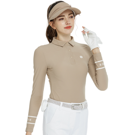 BLKTEE女精品收腰高爾夫長袖(杏色)