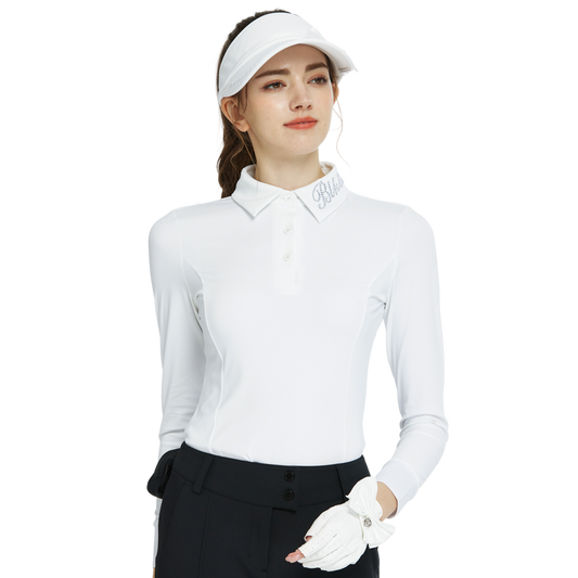 BLKTEE女立領翻領兩用高爾夫長袖(白色)