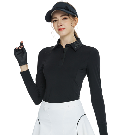 BLKTEE女立領翻領兩用高爾夫長袖(黑色)
