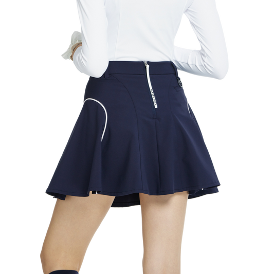 BLKTEE高腰修身花瓣短裙(寶藍)