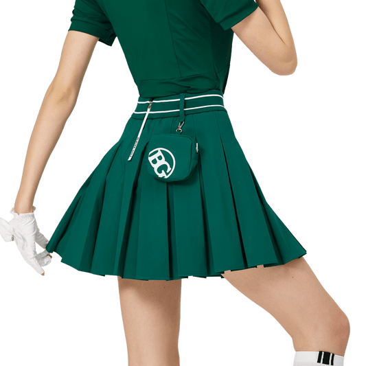BLKTEE Elastic High Waist College Style Female Pleated Skirt (Dark Green)