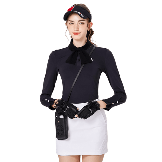 BLKTEE Women's Bow Tie Chanel Style Golf Long Sleeve (Black)