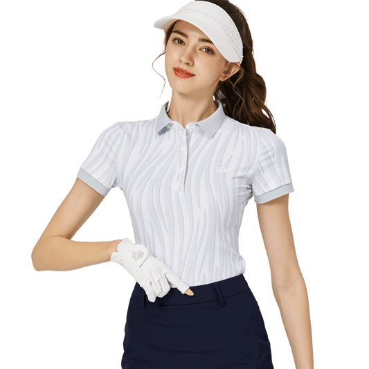 BLKTEE涼感冲孔透氣翻領女短袖上衣(白色)