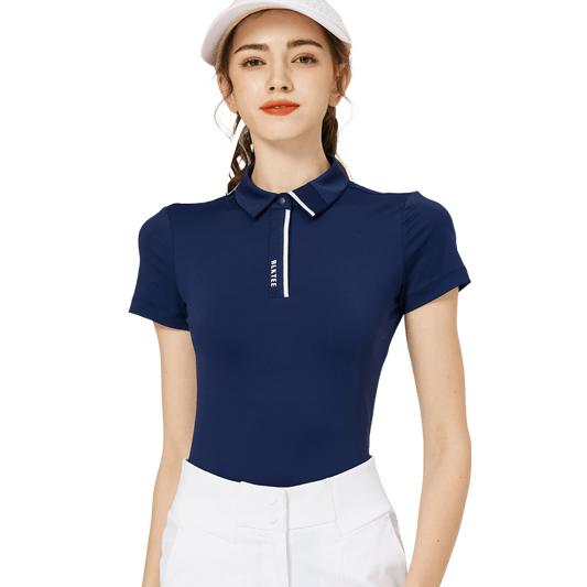 BLKTEE高彈柔軟翻領女短袖上衣(寶藍)
