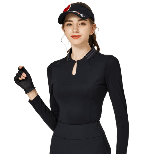 BLKTEE涼感小立領冰絲防曬連袖女上衣(黑色)