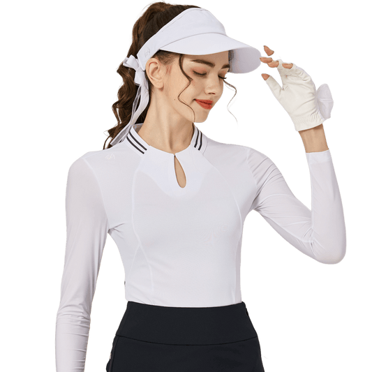 BLKTEE涼感小立領冰絲防曬連袖女上衣(白色)