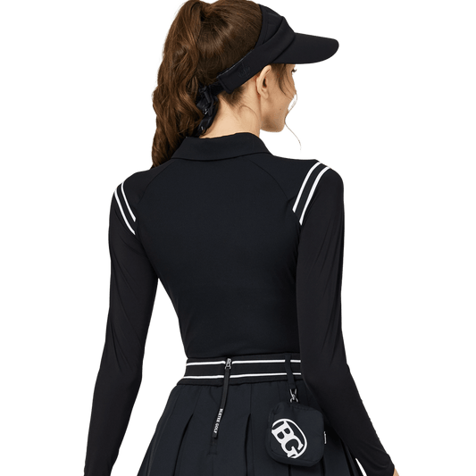 BLKTEE肩拼綫條防曬冰絲袖女上衣(黑色)