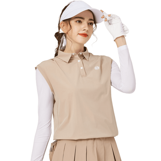 BLKTEE寬鬆版假兩件涼感女連袖無袖衣(卡其)