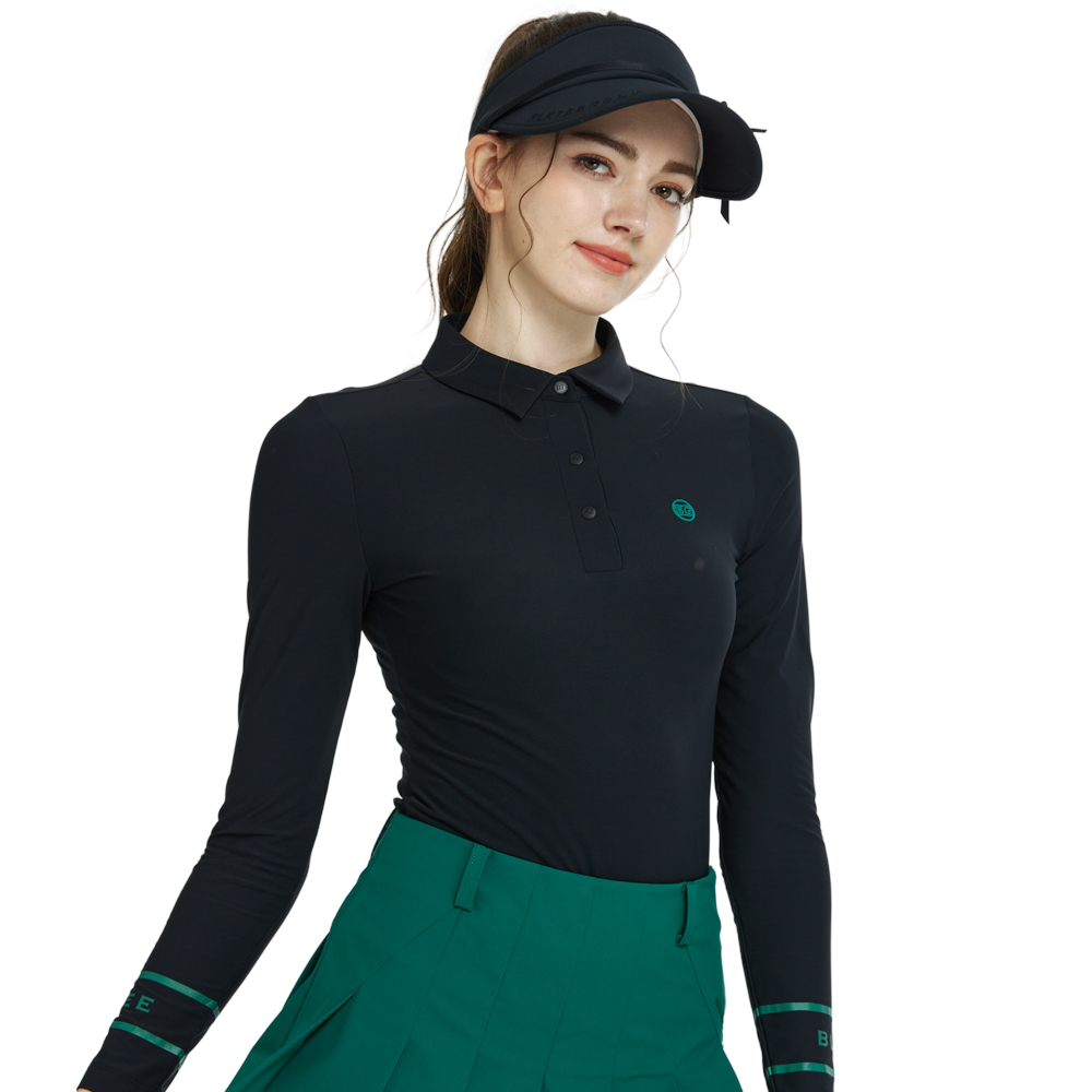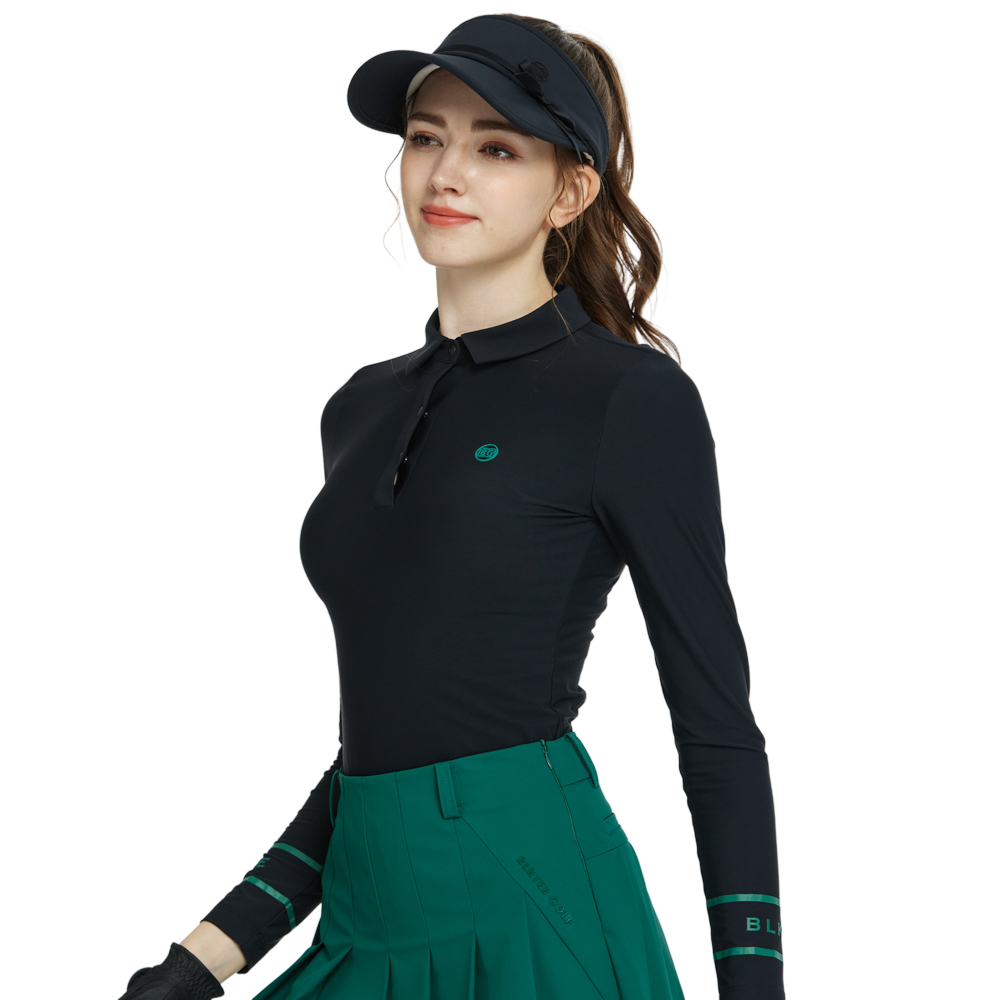 BLKTEE翻領磨毛長袖上衣(黑)