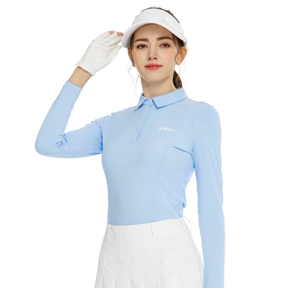 BLKTEE同色拼接長袖上衣(粉藍)