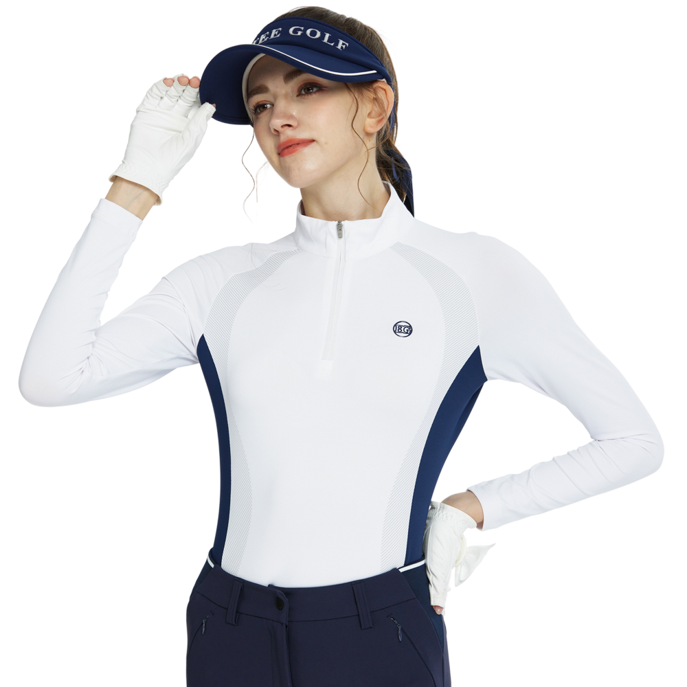 BLKTEE拉鍊立領拼色長袖上衣(白)