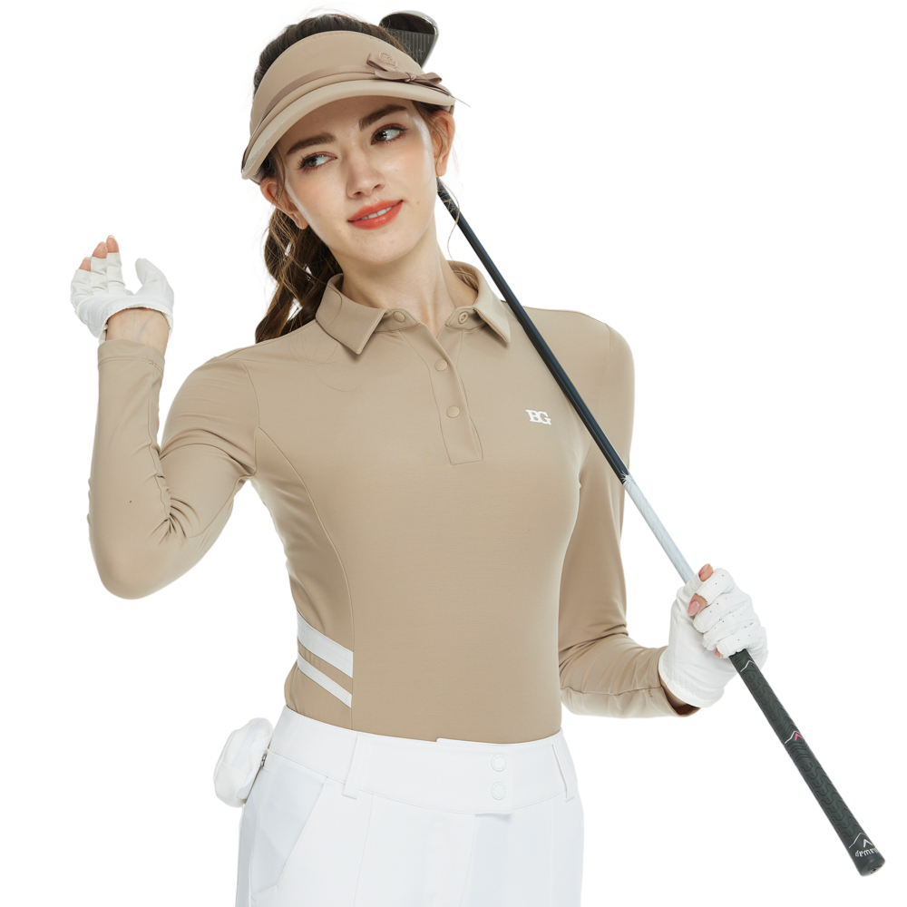 BLKTEE翻領收腰長袖上衣(卡其)