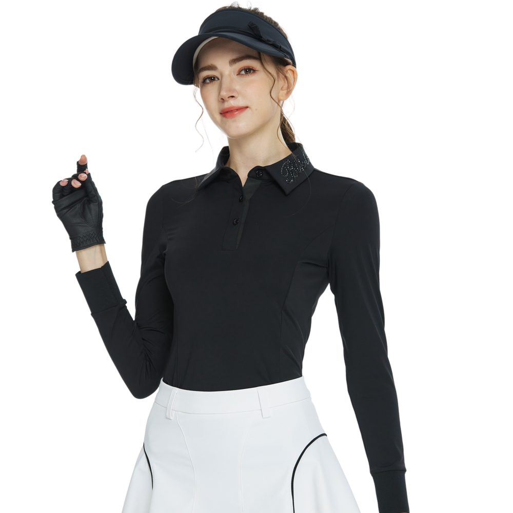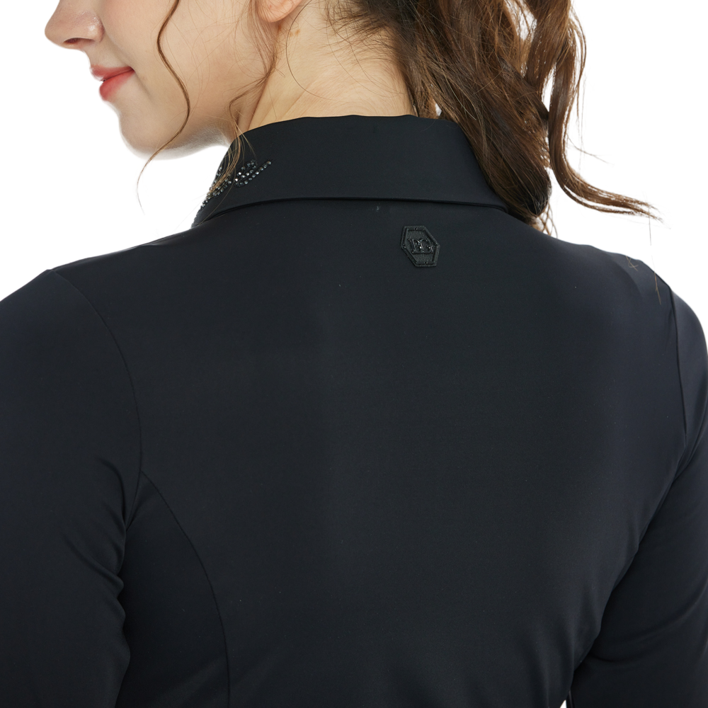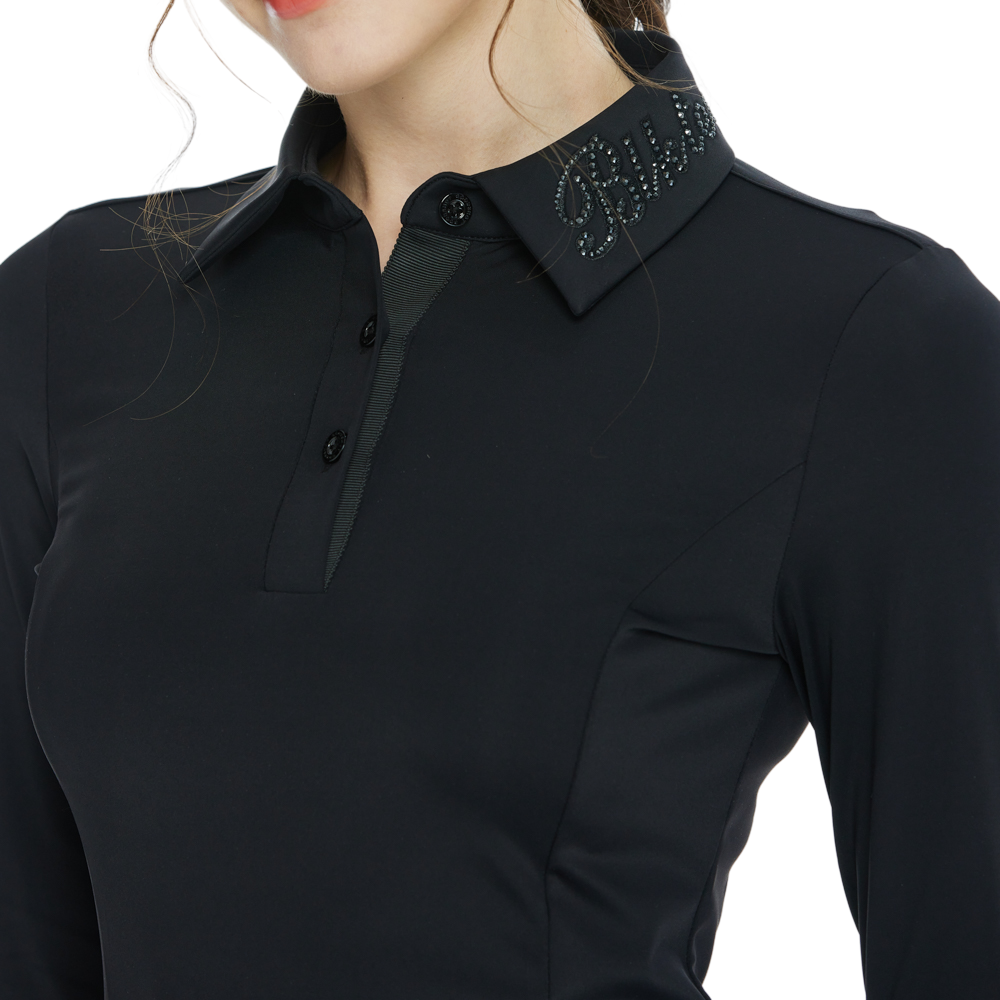 BLKTEE翻領燙鑽長袖上衣(黑)