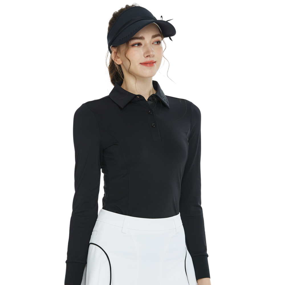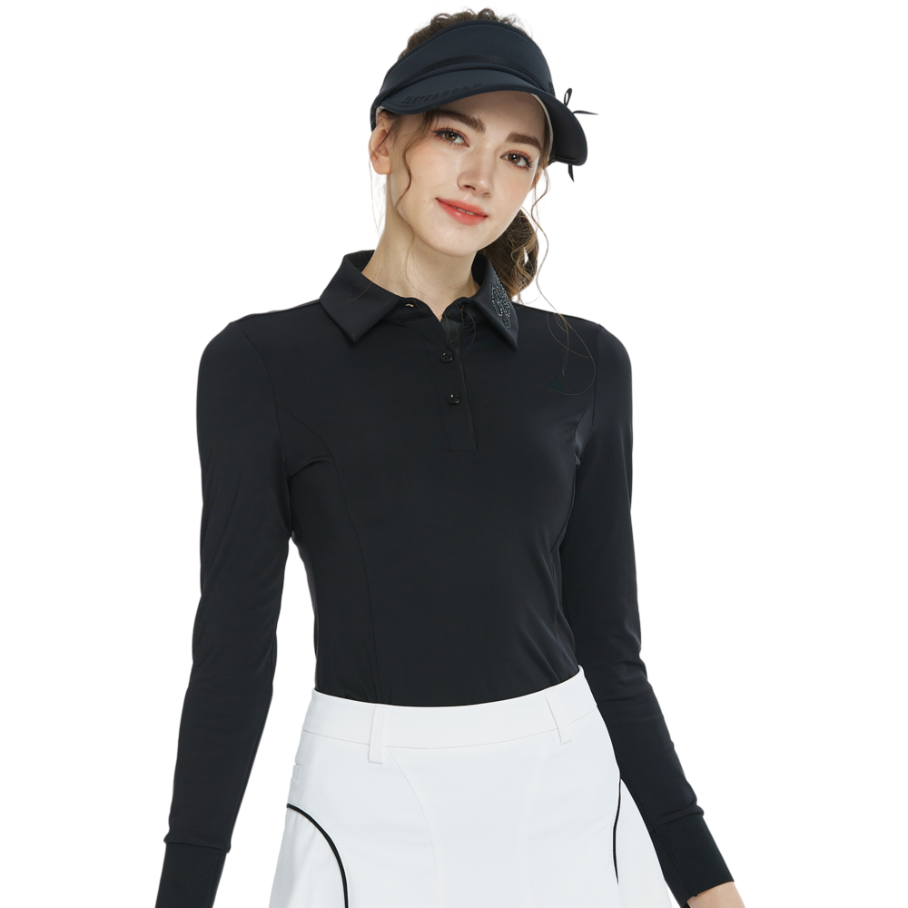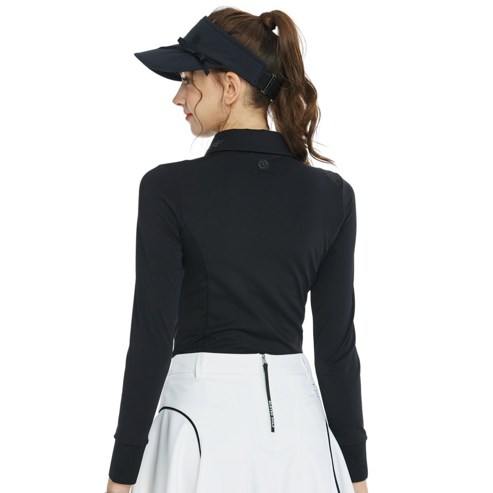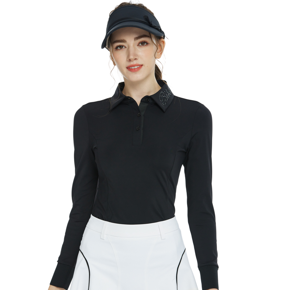BLKTEE翻領燙鑽長袖上衣(黑)