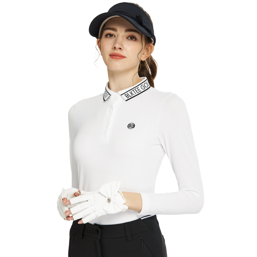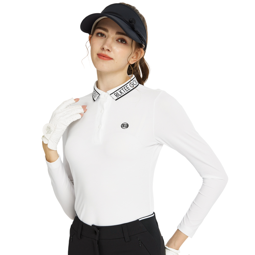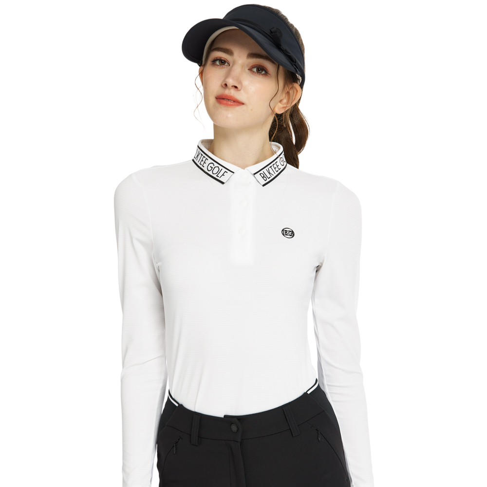 BLKTEE針織緹花領長袖上衣(白)