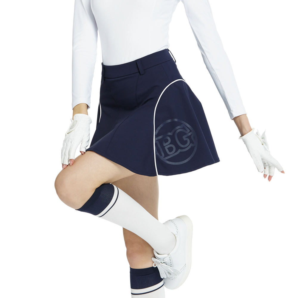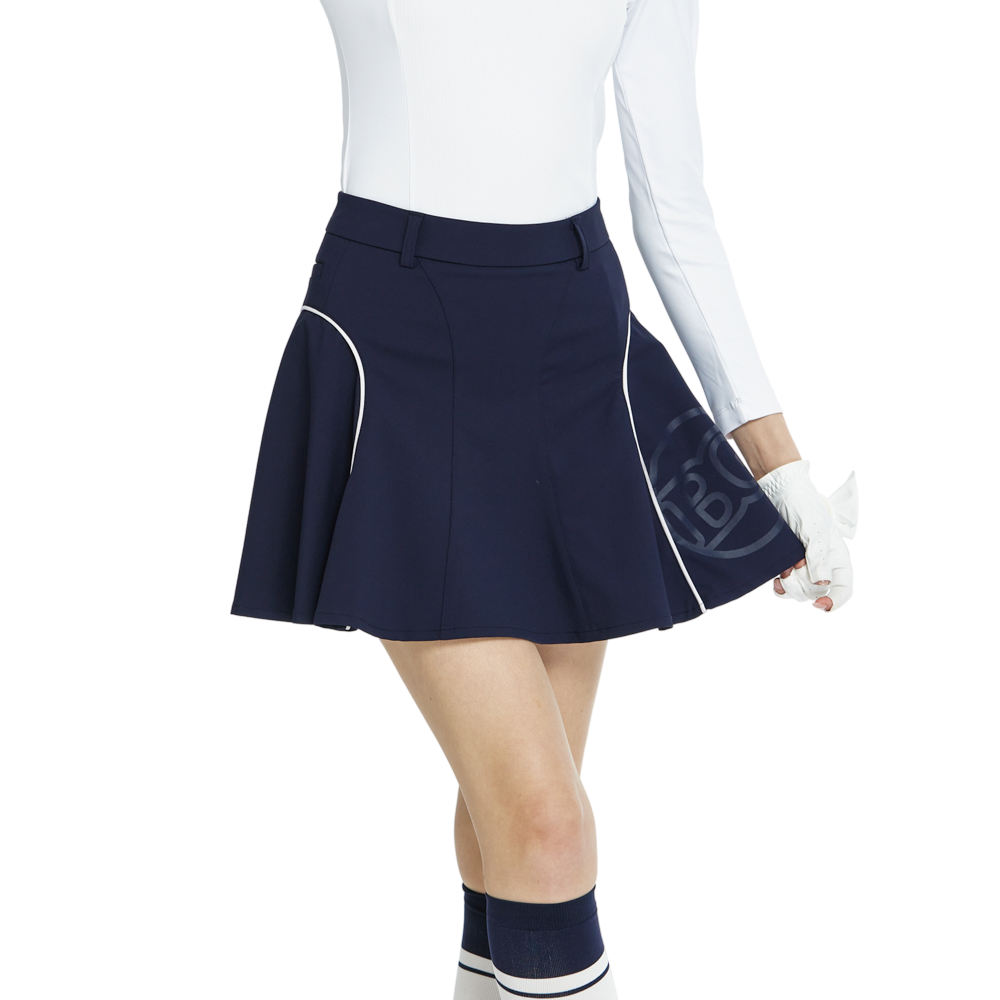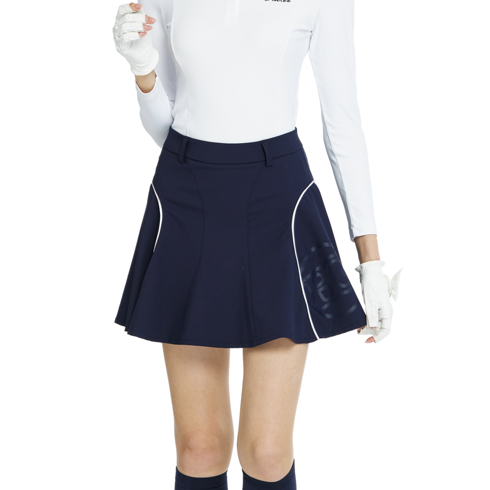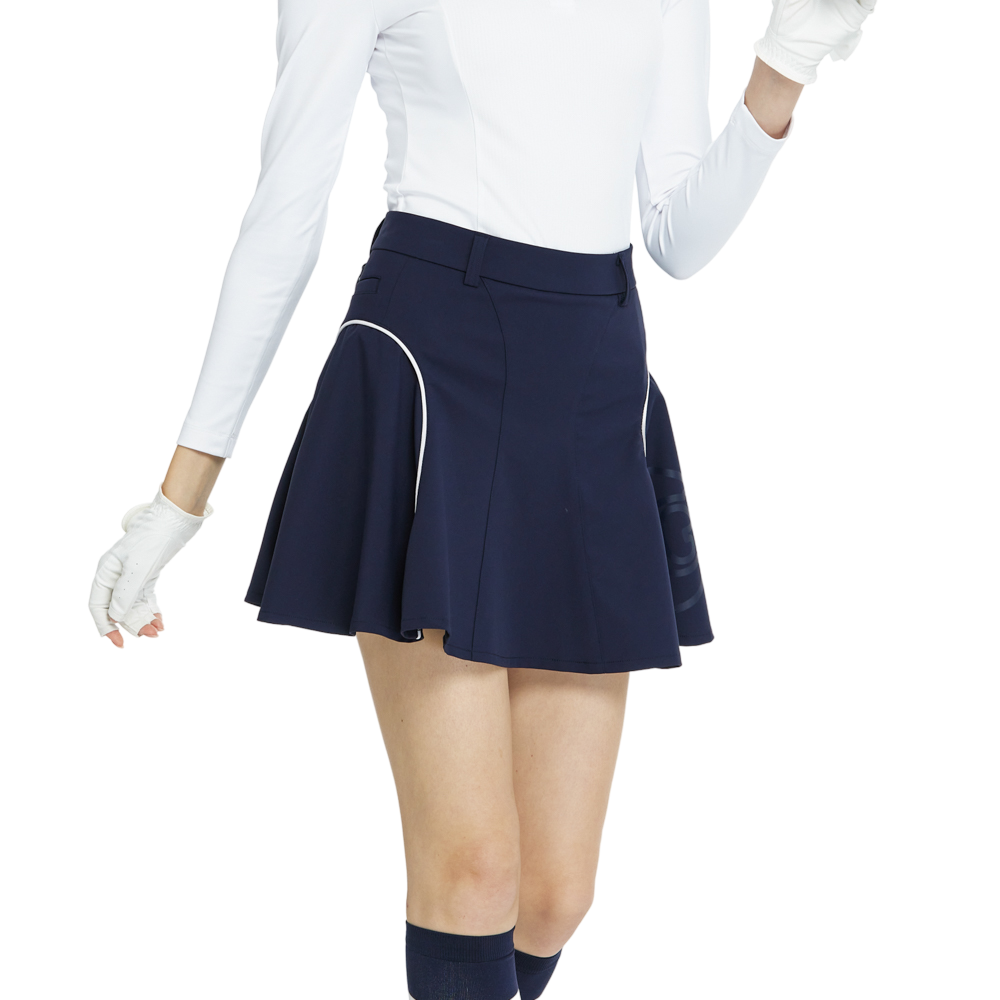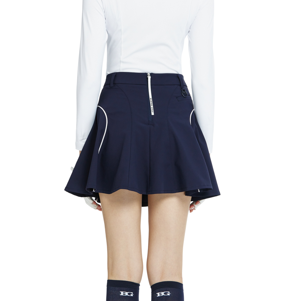 BLKTEE高腰修身花瓣短裙(寶藍)